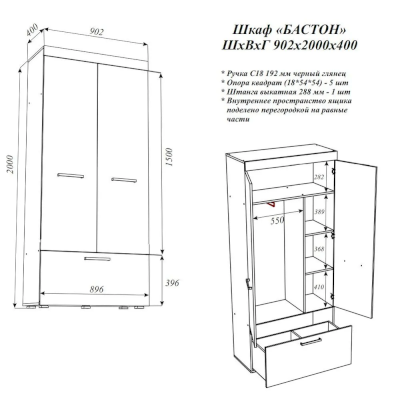 Шкаф Бастон (Эра) – товар доступен к покупке в интернет-магазине smolenskiy-dommebeli.ru. Цена – 12 452 руб. без учета доставки. Стоимость дополнительных услуг и сроки получения мебели уточняйте у менеджера. Возможен безналичный расчет, оплата по карте на сайте.
