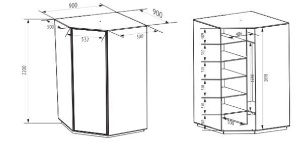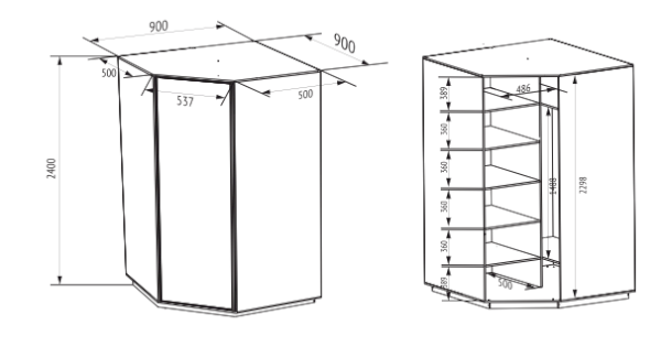 - Размер:(ШхГхВ) 900х900х2400