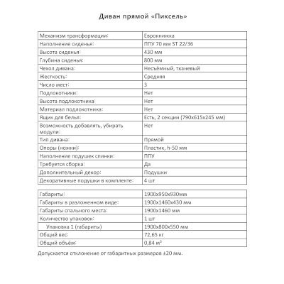 Диван Пиксель (Аквилон) – товар доступен к покупке в интернет-магазине smolenskiy-dommebeli.ru. Цена – 30 317 руб. без учета доставки. Стоимость дополнительных услуг и сроки получения мебели уточняйте у менеджера. Возможен безналичный расчет, оплата по карте на сайте.